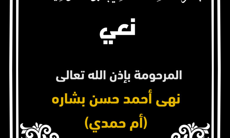 وفاة فقيدتهم طيبة الذكر المرحومة بإذن الله
