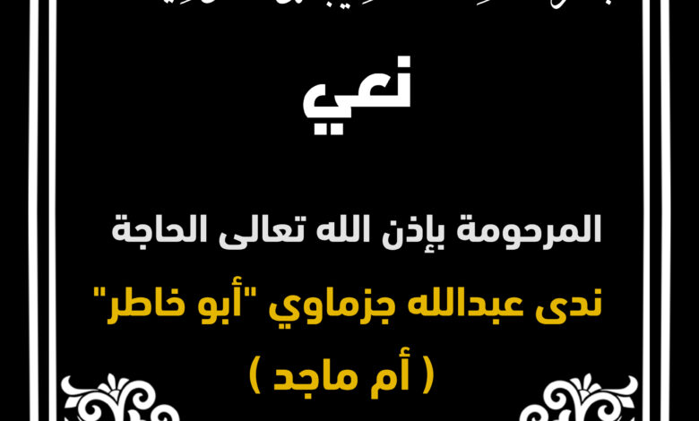 فقديتهم المرحومة الحاجة ندى عبدالله جزماوي “أبو خاطر” ( أم ماجد )