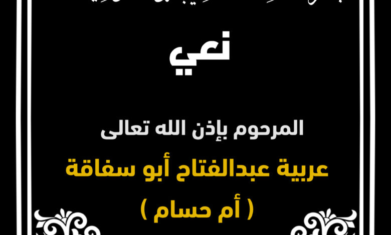 ينعى آل أبو سفاقة في الوطن والمهجر وأقرباؤهم وأنسباؤهمفقيدتهم المرحومة بإذن الله تعالى