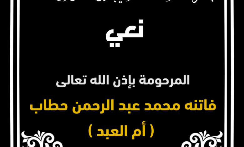 وأبناؤها ينعون بمزيد من الحزن وفاة المغفور لها المرحومة بإذن الله