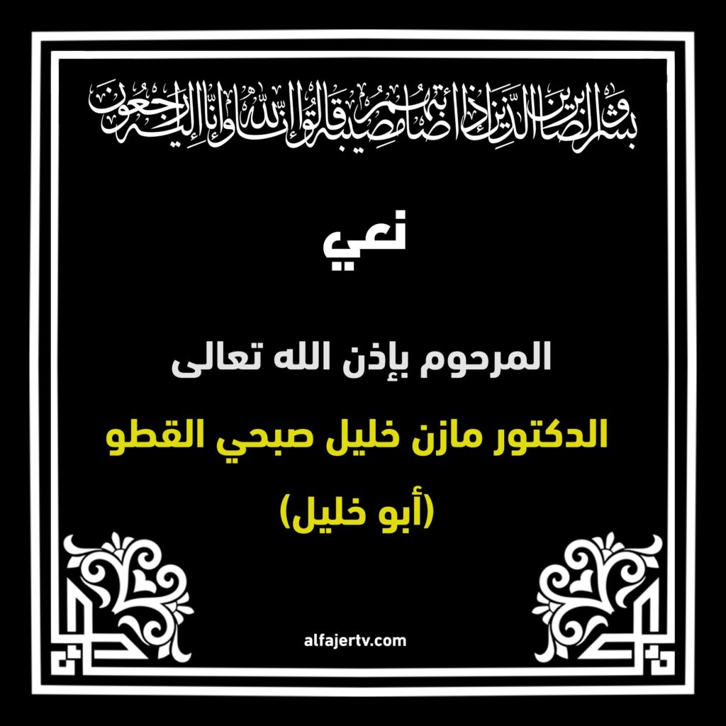 ينعى آل القطو عامّة وأبناء المرحوم الأستاذ خليل القطو (أبو مازن) خاصة وانسبائهم وأقربائهم فقيدهم طيب الذكر المرحوم بإذن الله