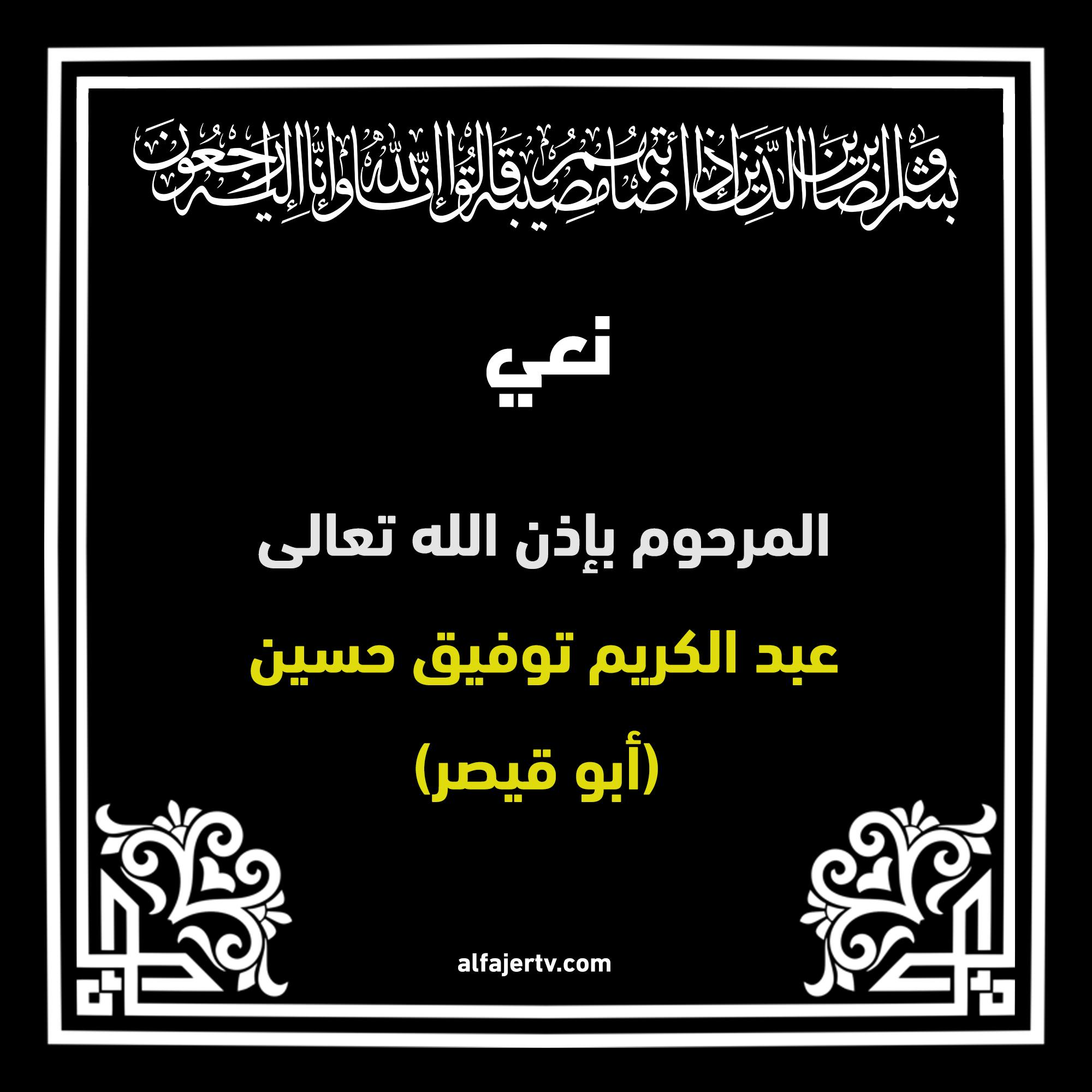 ينعى آل حسين عامة وأبناء المرحوم توفيق عبد الكريم حسين خاصة