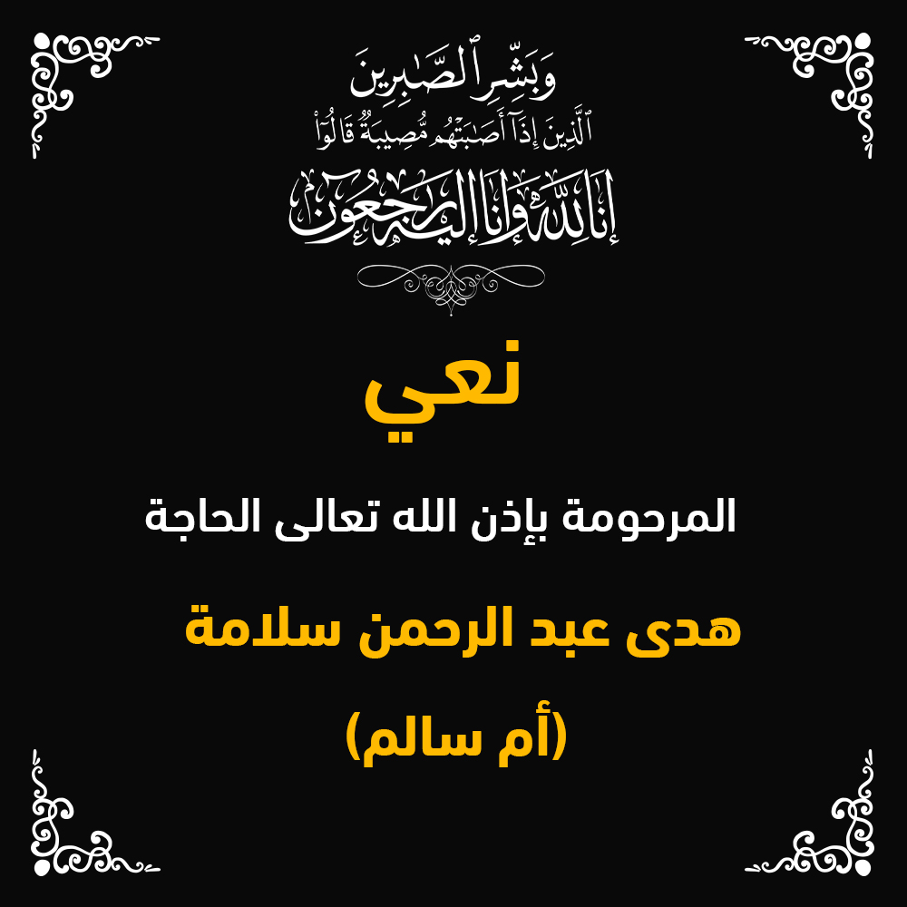 بقلوب مؤمنة بالله ينعى أبناء الفقيدة سامي سلامه (أبو محمد) و سليم سلامه (أبو جهاد)