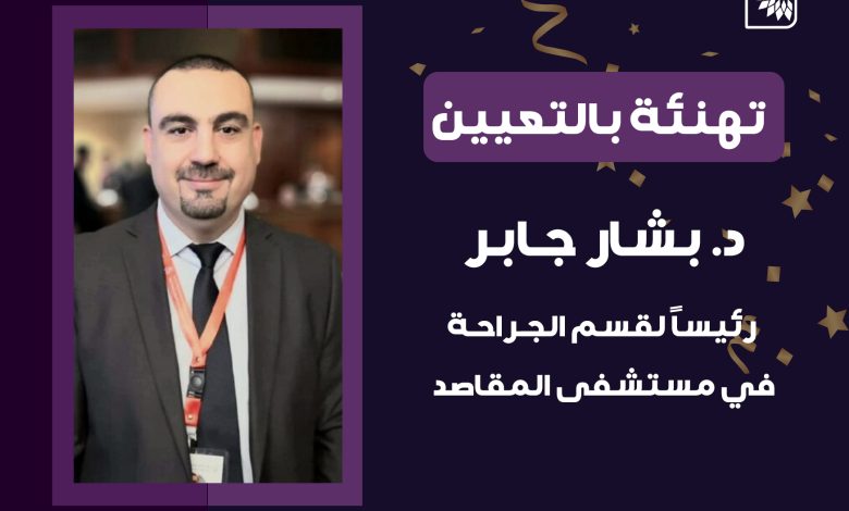 بمناسبة تعيينه رئيساً لقسم الجراحة في مستشفى المقاصد
