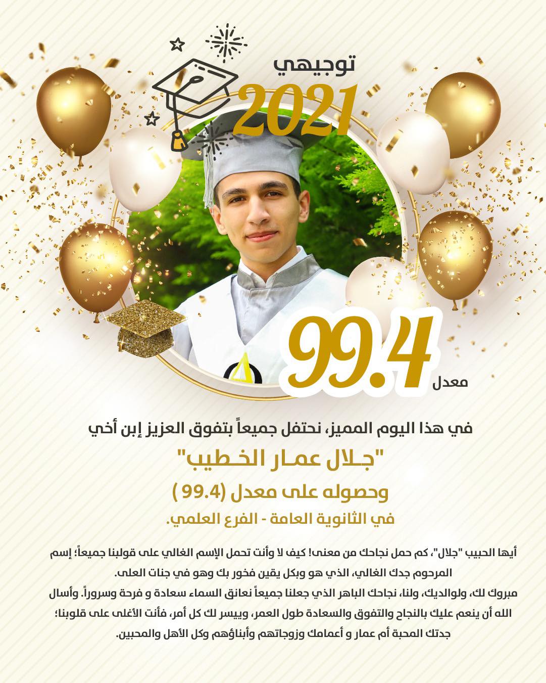 في الثانوية العامة – الفرع العلمي. أيها الحبيب “جلال”، كم حمل نجاحك من معنى!