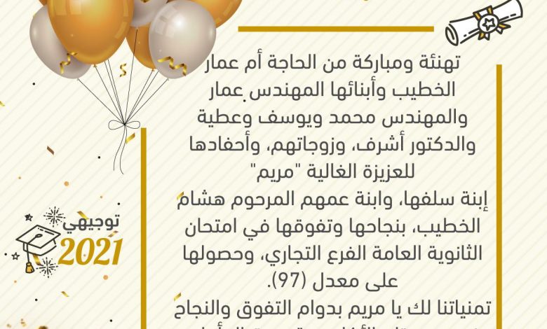 بنجاحها وتفوقها في امتحان الثانوية العامة الفرع التجاري