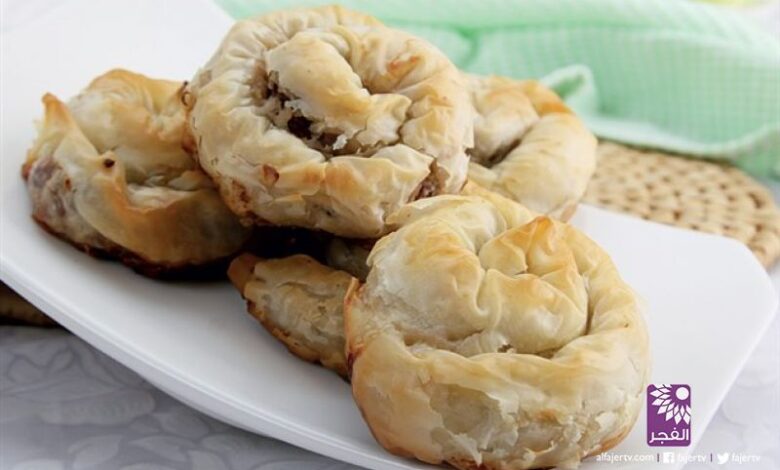 تسكب كمية من خليط اللحم فوق كل رقاقة فايلو وتلف العجينة فوق الحشوة مثل السيجار للحصول على جذع طويل.