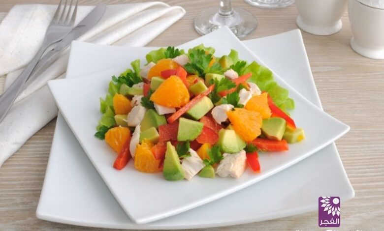طريقة عمل سلطة الدجاج بالبرتقال (وجبة متكاملة فى طبق سلطة)