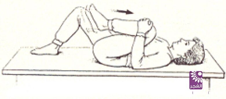 – تمدد على ظهرك فوق سطح صلب، وإثن ركبتيك وأبق قدميك مسطحتين.