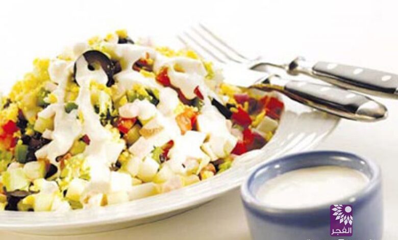 طريقة اعداد سلطة بصلصة الثوم اللذيذة
