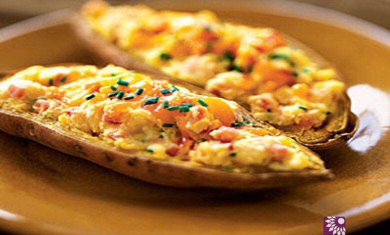 – تهرس البطاطا التي أخذت من القلب ثم نضع عليها الخلطه البيضاء وتقلب جيدا معا وتحشى بها البطاطا مرة اخرى.