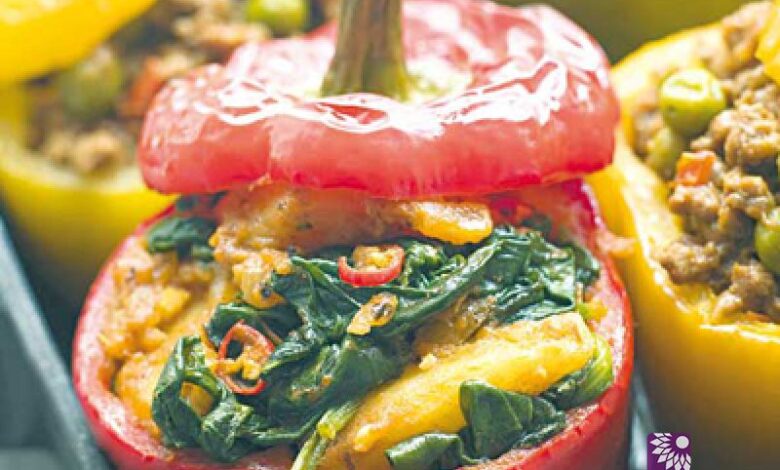 وبعدها تحشي خلطه الارز واللحم المفروم فى وسط الفلفل.