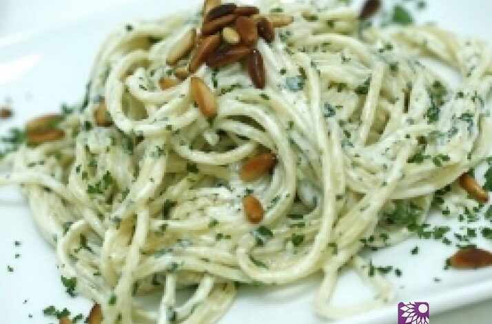 * وأخيراً تخلط صلصة النعناع والثوم وزيت الزيتون وعصير الليمون والملح جيدأ ثم تسكب على المعكرونة المسلوقة وتقدم باردة مع وجبات الطعام.