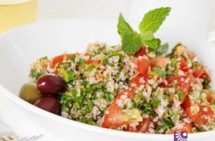 * وأخيراً نضع عليها الخبز المقلي ويرش عليها سماق وصحتين.