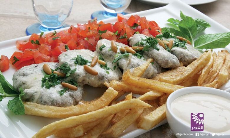 تُغمس أقراص الكفتة المقلية بصلصة الطحينة وتُصفى في طبق التقديم وتُزيّن بالبقدونس المفروم.