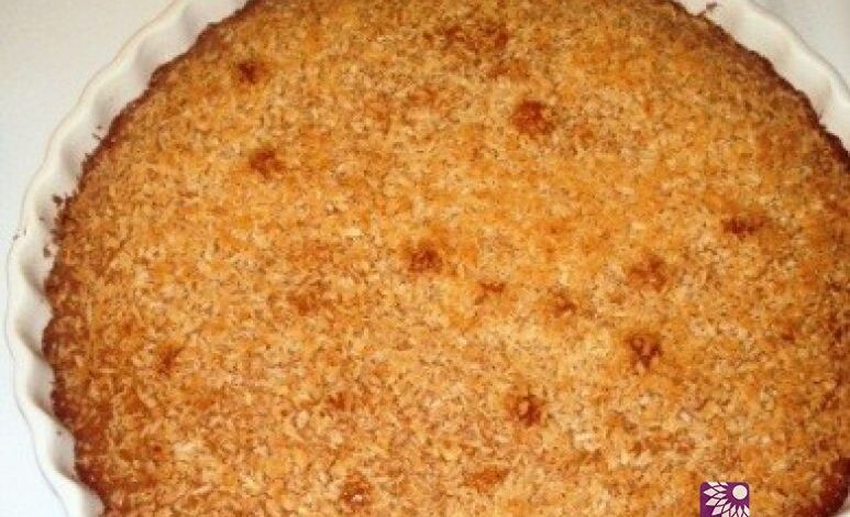 9-توزع العجينة المبشورة بشكل متساوى على طبقة المربى حيث تغطيه تماما