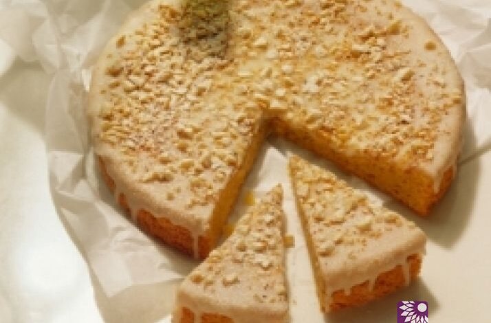 * وأخيراً تُقلب الكعكة إلى طبقٍ للتقديم وتُقدّم وصحتين.