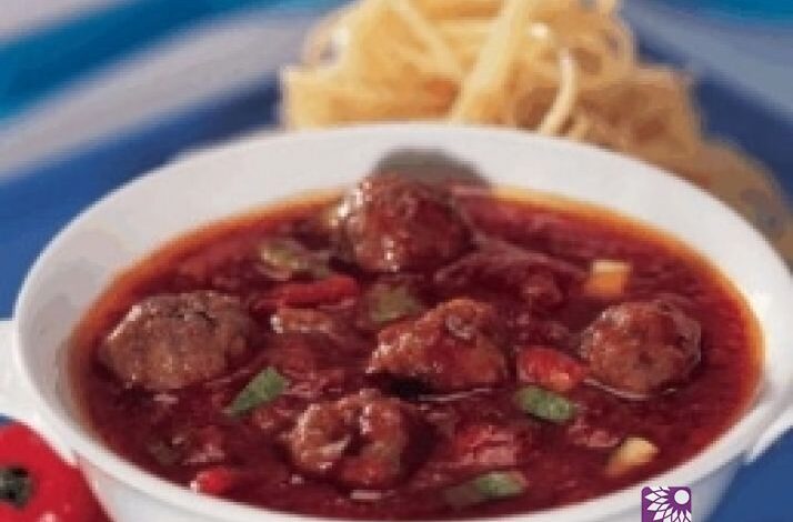 * تُضاف الطماطم، والكوسى، ومكعّبا مرقة الدجاج ماجي ملح أقل، والماء، وكرات اللحم المطبوخة.