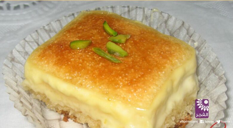 عندما تخرج البسبوسة من الفرن تبرد قليلا ثم تصب فوقة صلصة التوفي وتقطع