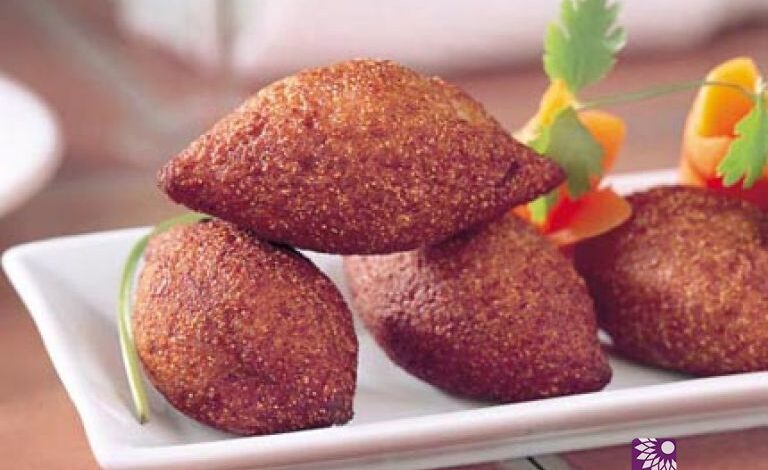 تضاف التوابل إلى اللحم والبرغل ويعجن الخليط جيداً ويفرم بمطحنة اللحم