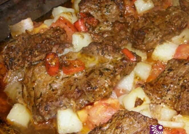 ضعي شرائح لحم البقر في إناء صغير الحجم، وأضيفي إليه الفلفل الحار، البقدونس، الفلفل الحلو، الثوم، الملح والفلفل، وأخلطي جيدا حتى تمام امتزاج الخليط بشرائح لحم البقر.