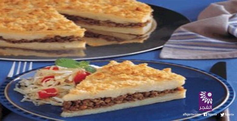 تُمرغ صينية الفرن قياس 30 سم بملعقتين كبيرتين من الزبدة المذوّبة وتُرش الصينيّة بملعقتين كبيرتين من الكعك المطحون ثم توضع جانباً (مع الاحتفاظ بالكميّة المتبقية من الزبدة والكعك المطحون). تُسلق البطاطا في الماء إلى أن تصبح مطهوّة جيداً ثم تُصفّى وتُترك جانباً كي تبرد وتُقشّر وتُهرس. تُمزج البطاطا المهروسة مع الملح، والفلفل، والبيض ثم توضع جانباً. في هذه الأثناء، يُحمّى الزيت في قدرٍ ويُقلى البصل لمدة دقيقتين ثم يُضاف إليه اللحم المفروم ويُقلّى المزيج لمدة 5 دقائق أو إلى أن يصبح بنّي اللون. تُضاف مكعبات مرقة ماجي بنكهة لحم الخروف المفتّتة وحبوب الصنوبر والتوابل وتُحرّك لبضع ثوانٍ أو إلى أن تمتزج كل المكوّنات ببعضها ثم توضع جانباً. تُوزّع نصف كمية البطاطا المهروسة فوق صينية الفرن المجهزّة ثم تُوزّع الحشوة بتجانسٍ فوق البطاطا تليها الكميّة المتبقية من البطاطا المهروسة على الوجه. تُرش الكمية المتبقية من الكعك المطحون على الوجه وتُسكب فوقه الكمية المتبقية من الزبدة المذوبة. يُطهى في فرنٍ محمّى على حرارة 220 درجة مئوية لمدة 20 إلى 25 دقيقة أو إلى أن يصبح الوجه ذهبي اللون