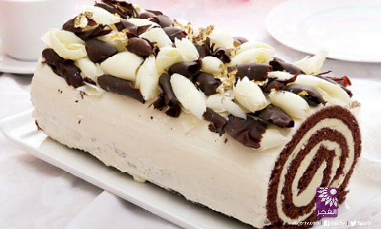 – تزين الرولاد بلفافات الشوكولا السوداء والبيضاء ويحفظ الجاتوه في الثلاجة حتى موعد التقديم.