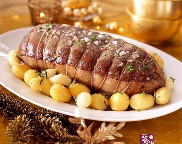و من ثم تجهز صينية عميقه للفرن و يوضع بها روستو اللحم