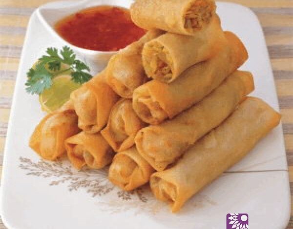 تُقلى اللفائف قبل التقديم، المجموعة تلو الأخرى، بالزيت الساخن لبضع دقائق أو إلى أن يصبح لونها بنياً ذهبياً.