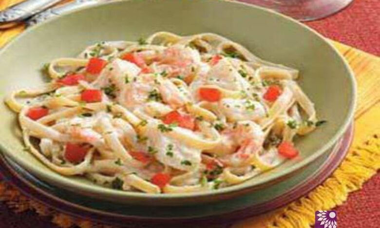 طريقة عمل مكرونة فيتوتشيني بالروبيان :