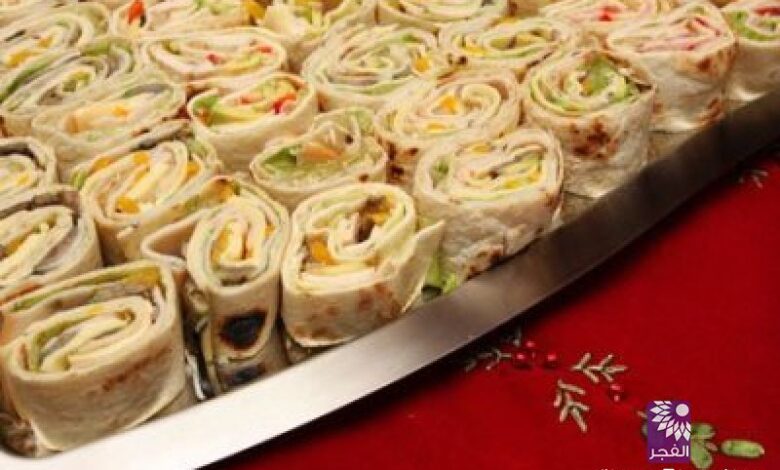 ثم تضاف شرائح الخس الي ساندوتش الخبز بالنعناع و يطوى كالرول