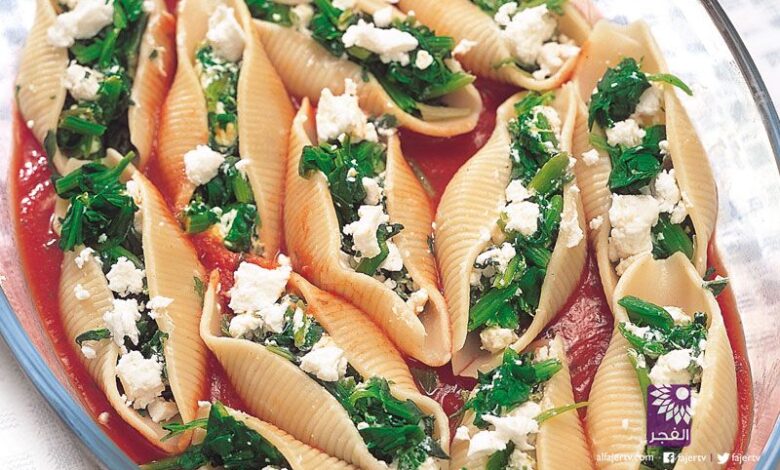 معكرونة الصدف المحشوة بالجبنة والسبانخ