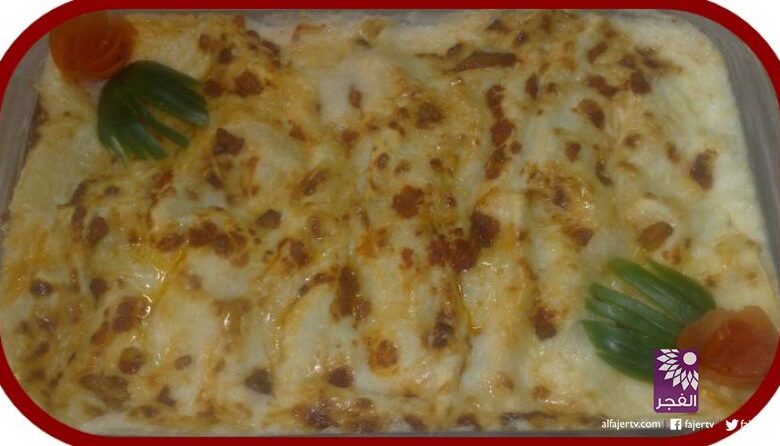 نجهز صلصة الباشاميل : نخلط الحليب وهو بارد مع السمنة والطحين والملح ونضعهم على النار مع التحريك المستمر وتجهز الصلصة