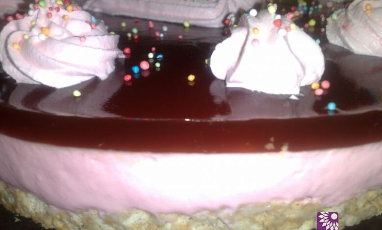 نقوم بطحن البسكويت ونشربه بالعصير ونرصه بقالب التشيز كيك المتحرك القاعدة …