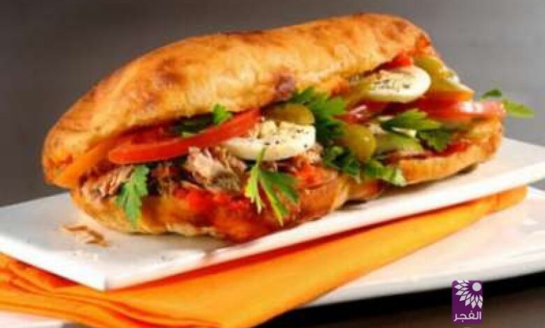 ندهن من جهتي اللحمنيوت الالفلفل المهروس، ونضع التونا، البطاطا، والبيض المسلوق، ومن ثم البندورة، والخيار المكبوس، واليمون وقطع الزيتون.