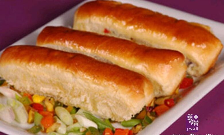 – يُقسم العجين إلى كُرات صغيرة، وتُفرد كل كرة على سطح مرشوش بقليل من الدقيق على شكل مستطيل، ويُوضع كمية مناسبة من الحشو على أحد طرفيَ العجين، وتُرش الجبنة الموزريلا مع الحشو، وتُقفل الجوانب، ويٌلف على هيئة أسطوانة، وتُرص في صينية مدهونة بقليل من الزيت.
