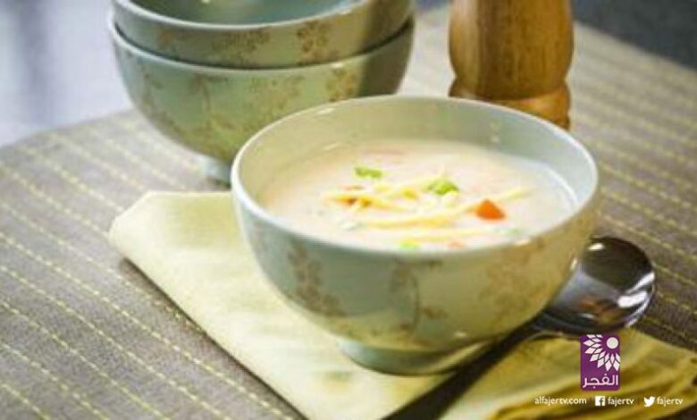– اتركي الشوربة على النار لمدة 5 دقايق، وبعد ذلك احضري مقدار الجبنة وضعيه في القليل من الشوربة لتذويبها، وبعد ذلك ضعيها على الشوربة، وقلّبيهم كلهم مع بعض.