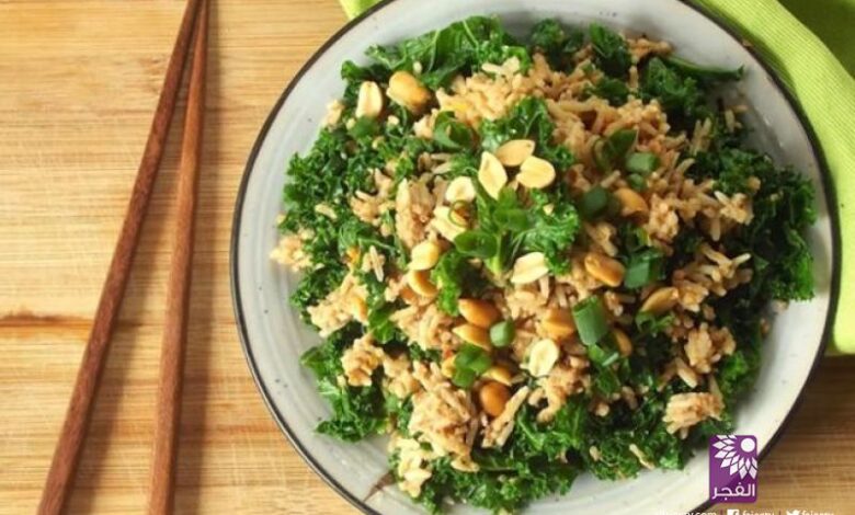 أرز مقلي بزبدة الفستق وأوراق اللفت