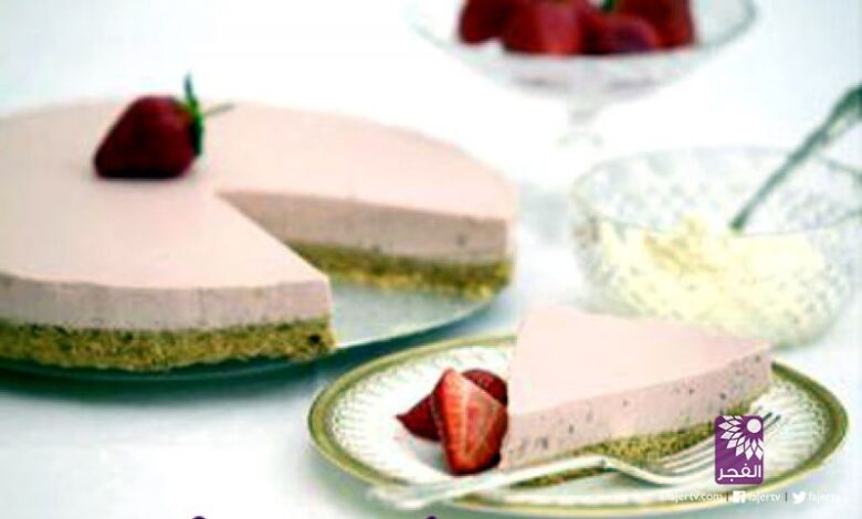 – ضعي الخليط في الصينية التي فيها البسكويت، وساوي السطح، وبعد ذلك ادخّلي الصينية في الثلاجة حتى تبرد، واتريكها لمدة 6 ساعات، وبعد ذلك اخرجيها وزيّنيها بقطع الفراولة