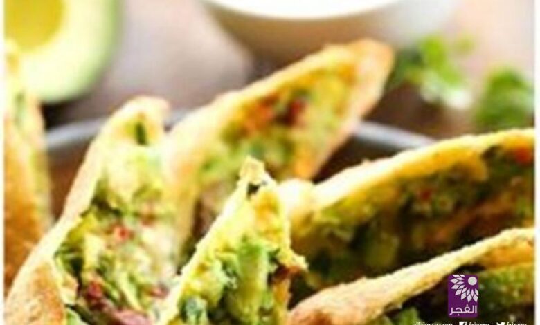 بالتدريج، يوضع مزيج الأفوكادو في وسط كل لفافة. تلف اللفافة بإحكام، تطوى من الجانبين. باستخدام إصبعك، تفرك الحواف بالماء، وتغلق. كرر العملية حتى تنفذ كمية الافوكادو.