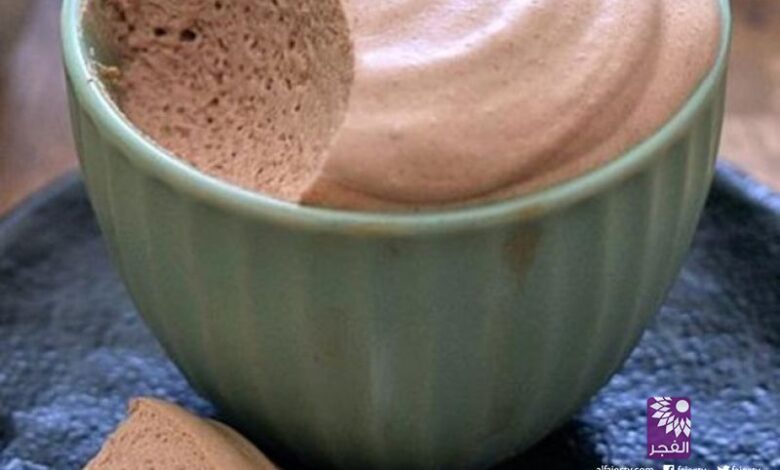 * قبل إعداد الموس، يتم وضع الوعاء والخفاقة في الثلاجة لمدة 15 دقيقة ليبرد.