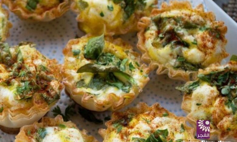 بعناية تملئ كل أكواب الفيلو مع خليط البيض، وتخبز دون غطاء لمدة 18 – 20 دقيقة أو حتى ينضج البيض.