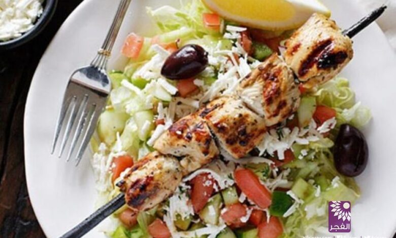 كباب الدجاج المشوي مع سلطة خطيرة لوجبة مشبعة وغنية بالمغذيات.