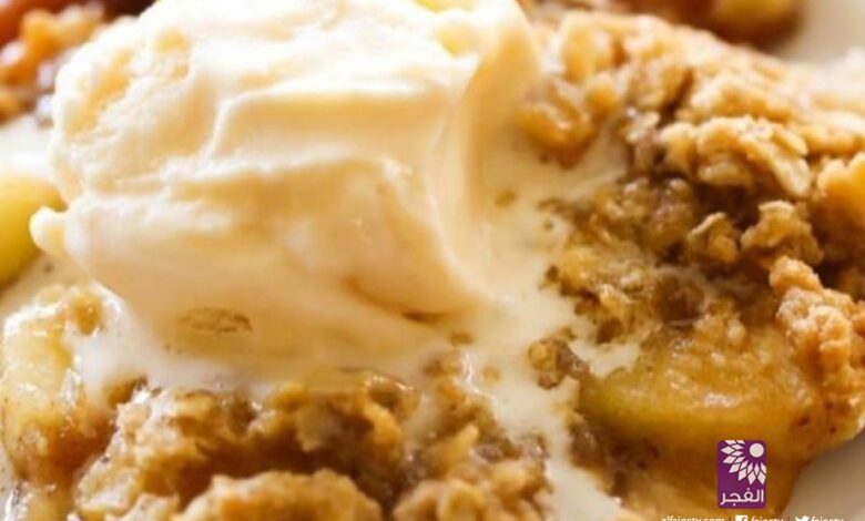 في وعاء خلط متوسط، تخلط الزبدة والشوفان والدقيق والسكر البني. تقطع الزبدة وتضاف فوق المكونات الأخرى حتى يصبح الخليط متفتت.