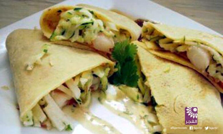 كريب محشي بالجمبري وصوص البشاميل