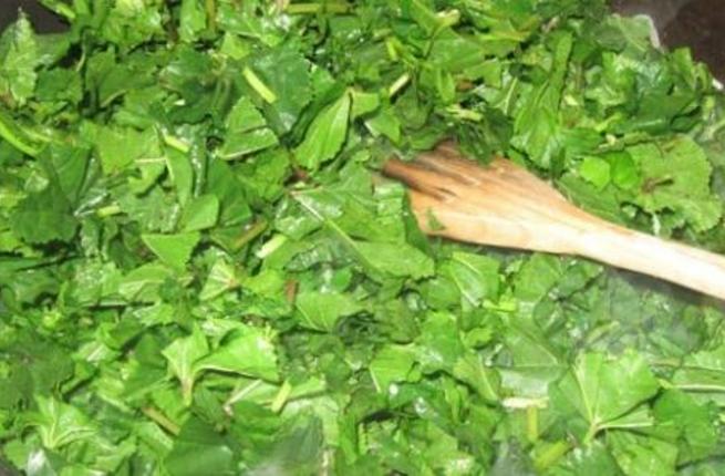 – ثم نضيف الخبيزة إلى البصل، ونقلبها معه جيداً حتى تخرج كل السائل الموجود بها.