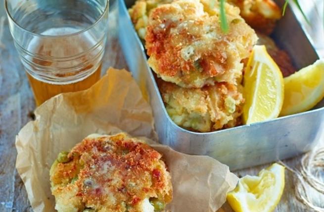 تعلف الفطائر بالدقيق (تخلص من الفائض). يحمى الزيت في مقلاة كبيرة على حرارة متوسطة تميل إلى المرتفعة. تقلى الفطائر لمدة 3-5 دقيقة على كل جانب حتى تصبح ذهبية اللون – تقلى على دفعات إذا لزم الأمر. يقدم هذا الطبق مع سلطة خضراء هشة.