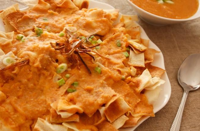 أحضري مقلاة ثم اقلي بها القليل من البصل والثوم مع ملعقة الزبدة، وبعد أن يتحمر أضيفي ملعقة من الخل، ثم اسكبيها على وجه الفتة. اقتراح يمكنك إضافة الكزبرة الجافة المطحونة. يمكنك الاستعاضة عن الخل بعصير الليمون. يمكنك إضافة رب البندورة إلى الشوربة أثناء طبخها. يمكنك إضافة قطع من الدجاج بعد قليها أولا مع القليل من البصل في الزيت النباتي.