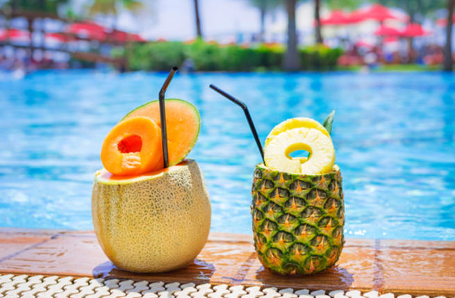 – ضعي قطع الشُّمام، وقطع الأناناس بالإضافة لمكعبات الثّلج، واخفقي المكوّنات مجدّداً مع الشّراب السّابق حتّى تحصلي على خليطٍ متجانس القوام.