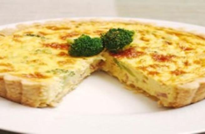 نضع خليط الخضار فوق العجينة، وننثر الجبنة، ونسكب خليط البيض. نقلل حرارة الفرن، ونعيد الصينية إلى الفرن مرةً أخرى، ونتركها لمدة نصف ساعة.
